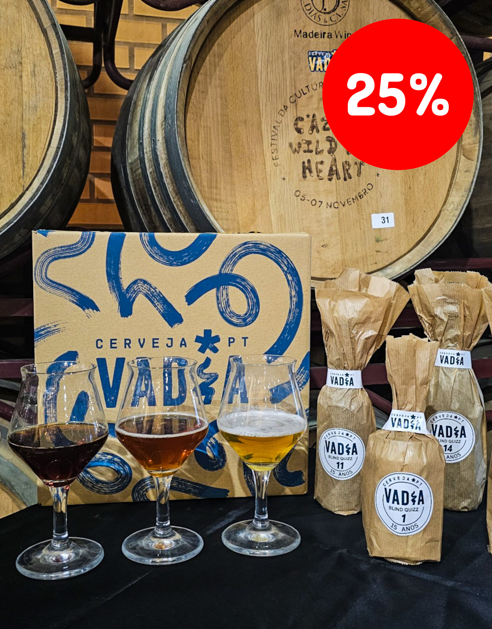 Para celebrar os seus 15 anos, a Cerveja Vadia lança o pack especial “Blind Quiz Vadia 15 anos – 15 cervejas”, uma experiência única de prova cega que homenageia o espírito irreverente e aventureiro da marca. Este pack reúne 15 cervejas artesanais produzidas em 2025, incluindo algumas já conhecidas do público e outras totalmente novas e exclusivas. Cada garrafa vem embalada em sacos idênticos, numerados de 1 a 15, desafiando os apreciadores a descobrir qual cerveja se esconde por trás de cada número.